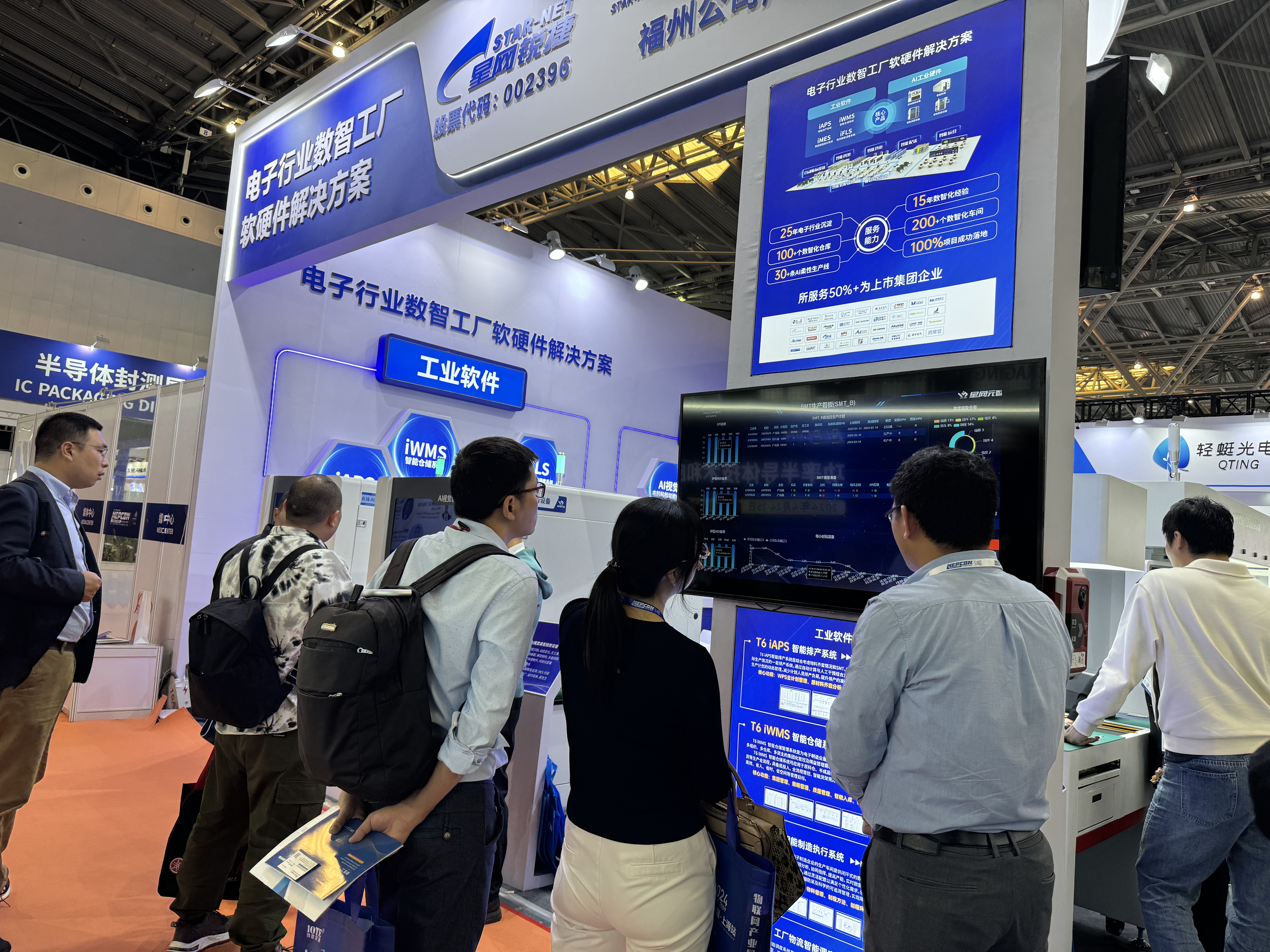 星网元智携“电子行业数智工厂软硬件解决方案”八大产品亮相展会现场,吸引了众多新老客户驻足了解。从展会开展至结束,星网元智始终以热情饱满的状态迎接客户,共同探讨,深入交流。