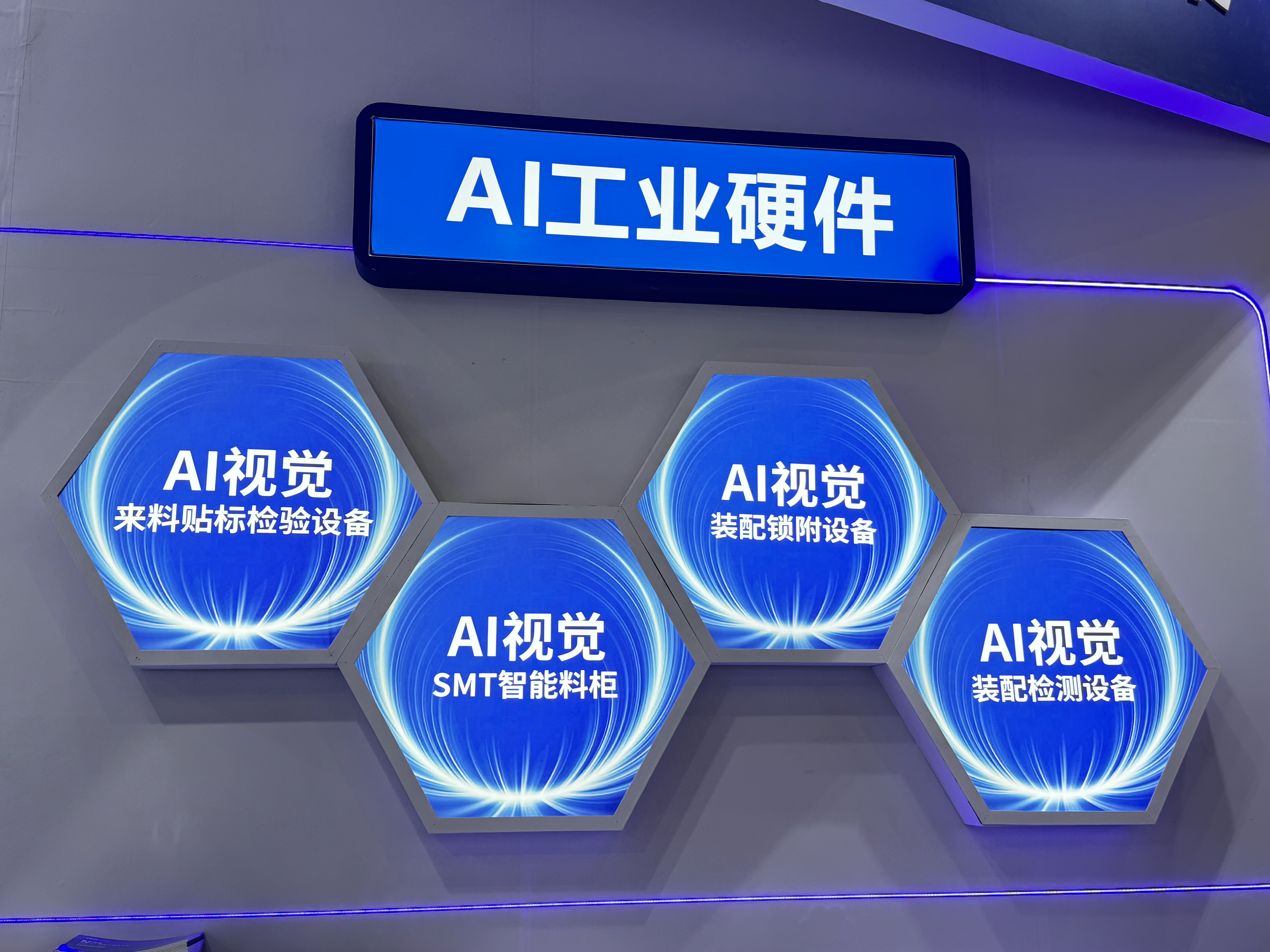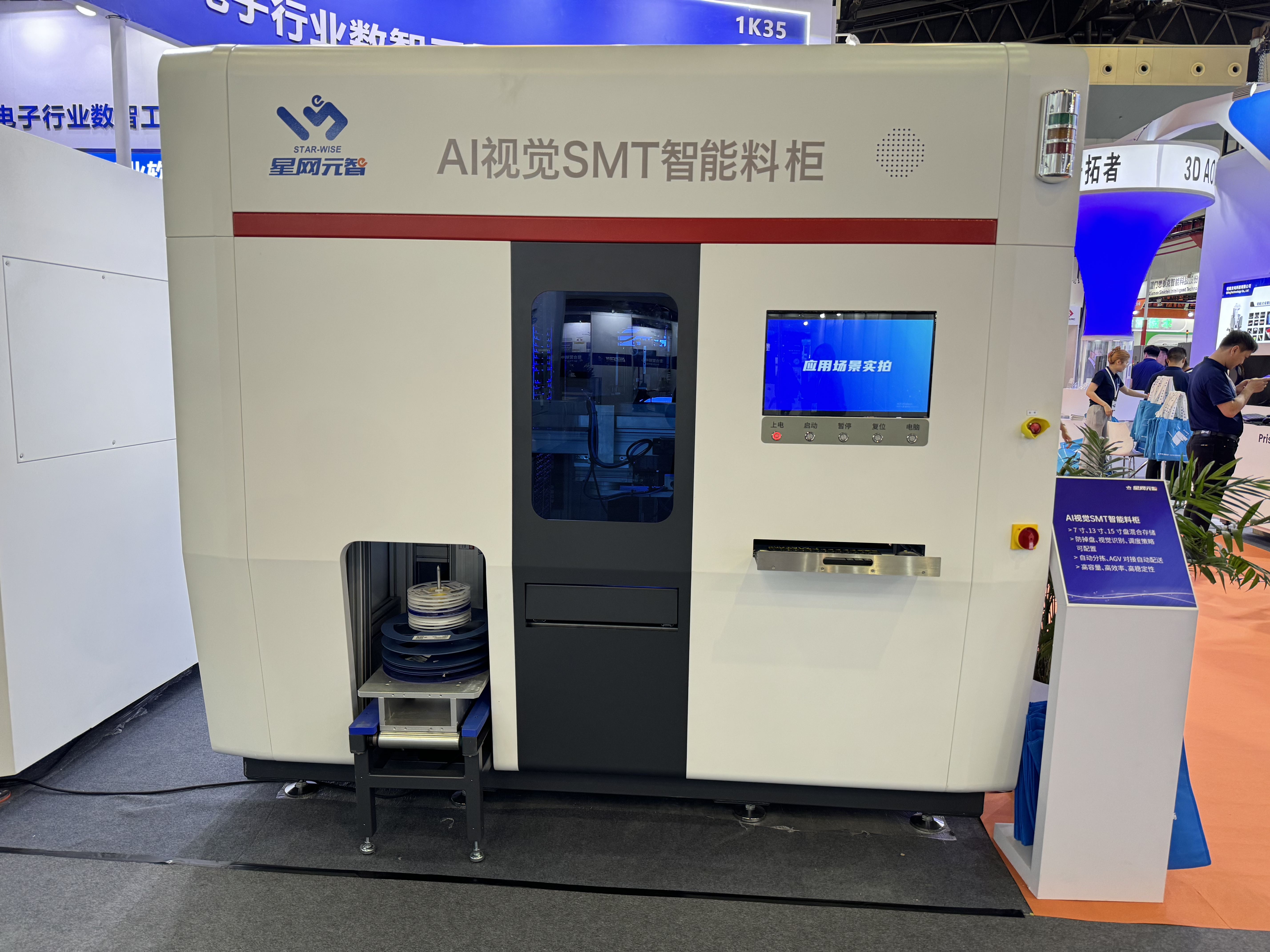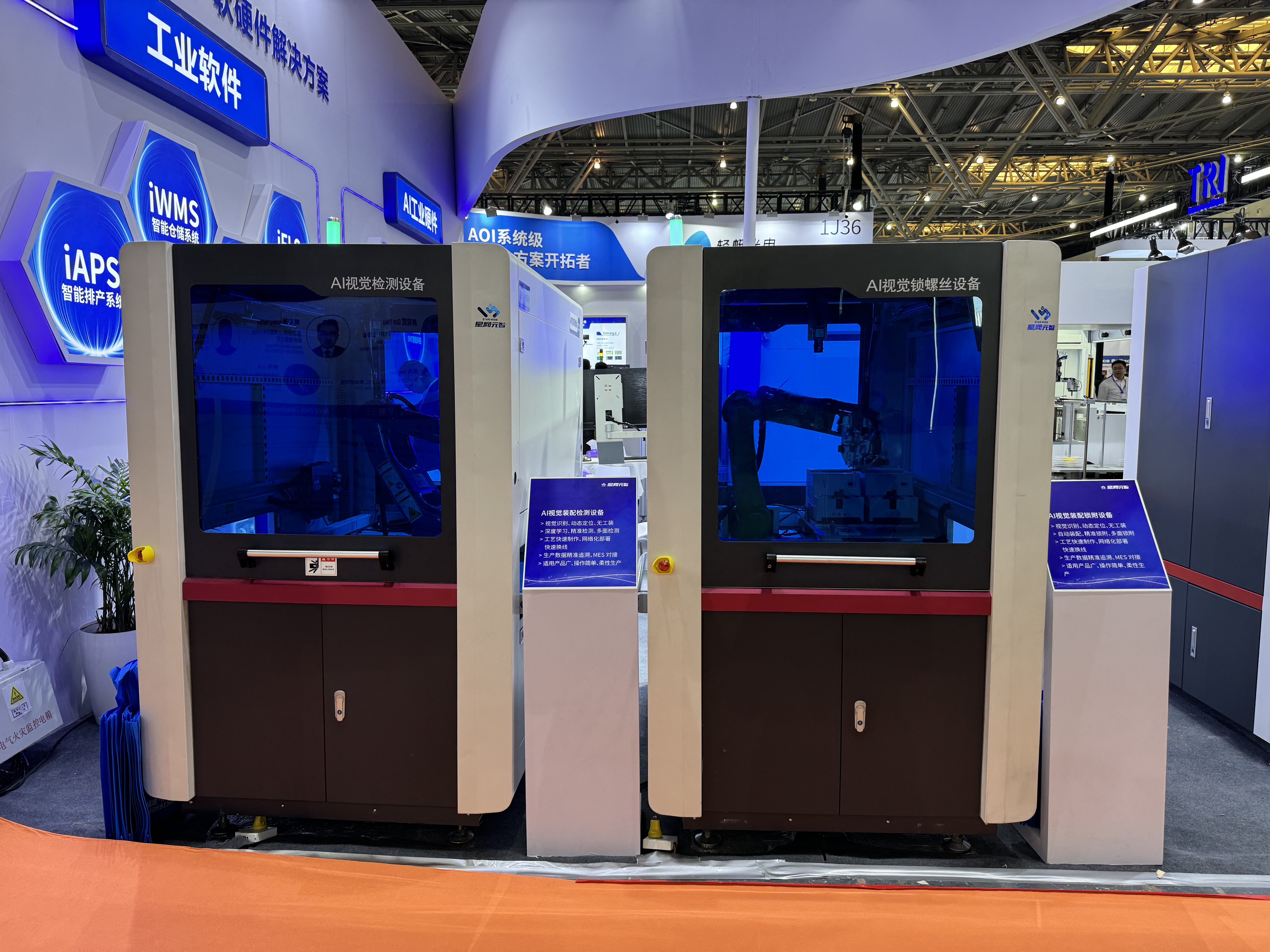除了工业软件,星网元智还携五台AI工业硬件设备,亮相展会现场,让广大观众能够更直观的感受到,星网元智AI视觉智能设备带来的智能化效益。现场展示的AI工业硬件设备包含:AI视觉全自动来料贴标检验设备、AI视觉半自动来料贴标检验设备、AI视觉SMT智能料柜、AI视觉装配锁附设备、AI视觉检测设备,有效提升生产效率、产品质量、减少人员等。