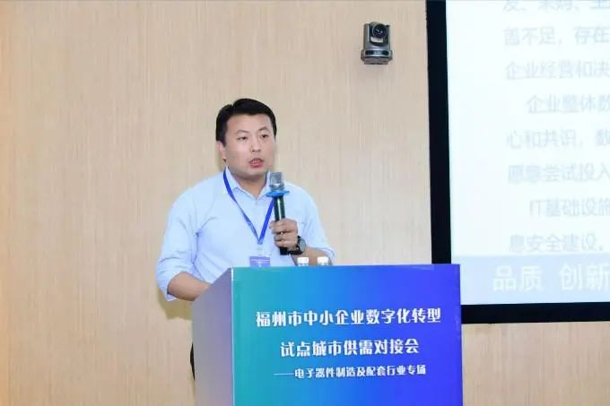 会议聚焦电子器件制造及配套行业的数字化转型,福州市工业和信息化局围绕“试点企业申报、自主选择服务商、改造项目立项、实施数字化改造、评测验收、资金兑现、生态打造”等方面对试点工作进行全流程讲解,为参会企业提供了明确的数字化转型路径。同时,福州市工信局也深入解读了“数字化水平提升改造补助、贷款贴息、优秀试点企业奖励以及技术改造补助”等政策,进一步释放政策红利,鼓励企业加快数字化改造步伐。