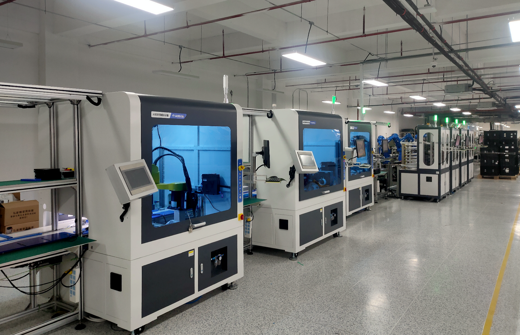 ,各种产品的AI视觉测试生产线、AI视觉打包装箱线也在逐步实现中。