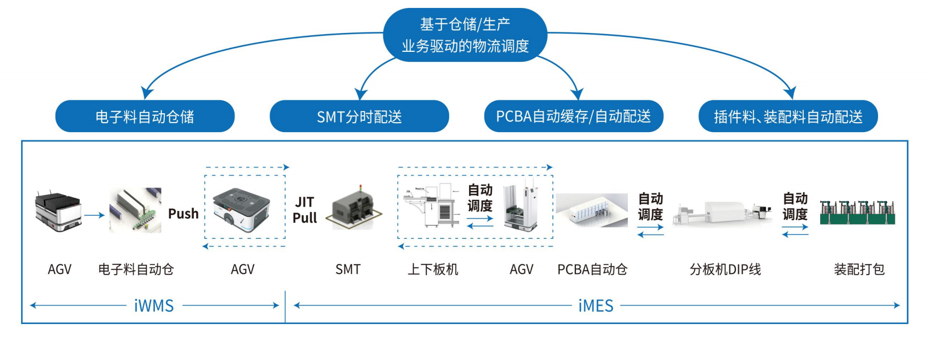 ,该系统是面向电子制造业发布的一套工厂物流智能的调度系统,解决企业在引进自动/智能仓储设备、AGV设备和自动生产线(或设备)后,人机配合不理想、配送节拍不稳定、无法真正实现人员优化等问题,具有如下特点: