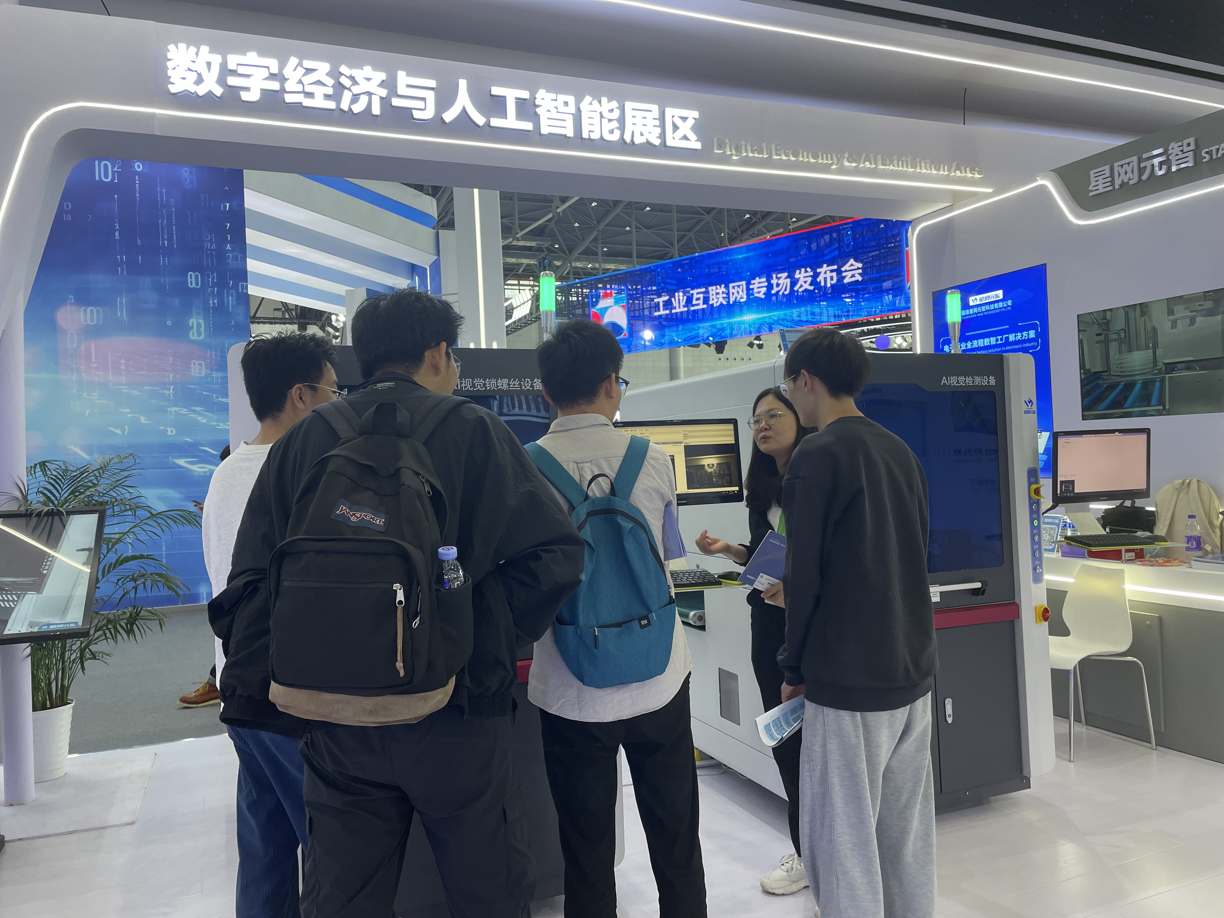 大会邀请了来自全球制造业领域1200余位重量级嘉宾及60余家世界500强及跨国公司高管等300多位外方代表参展参会。福建为本届大会唯一的“主宾省”,带来了先进制造、新能源、数字经济与人工智能、传统优势产业、新材料与生物医药五个板块,以恢弘大气的布展展现了数字工业时代福建制造新面貌。星网元智,携AI视觉检测设备及AI视觉装配设备,亮相“数字经济与人工智能区”。这两台基于AI视觉算法的自动化生产线设备,一经亮相,吸引不少现场观众的围观。