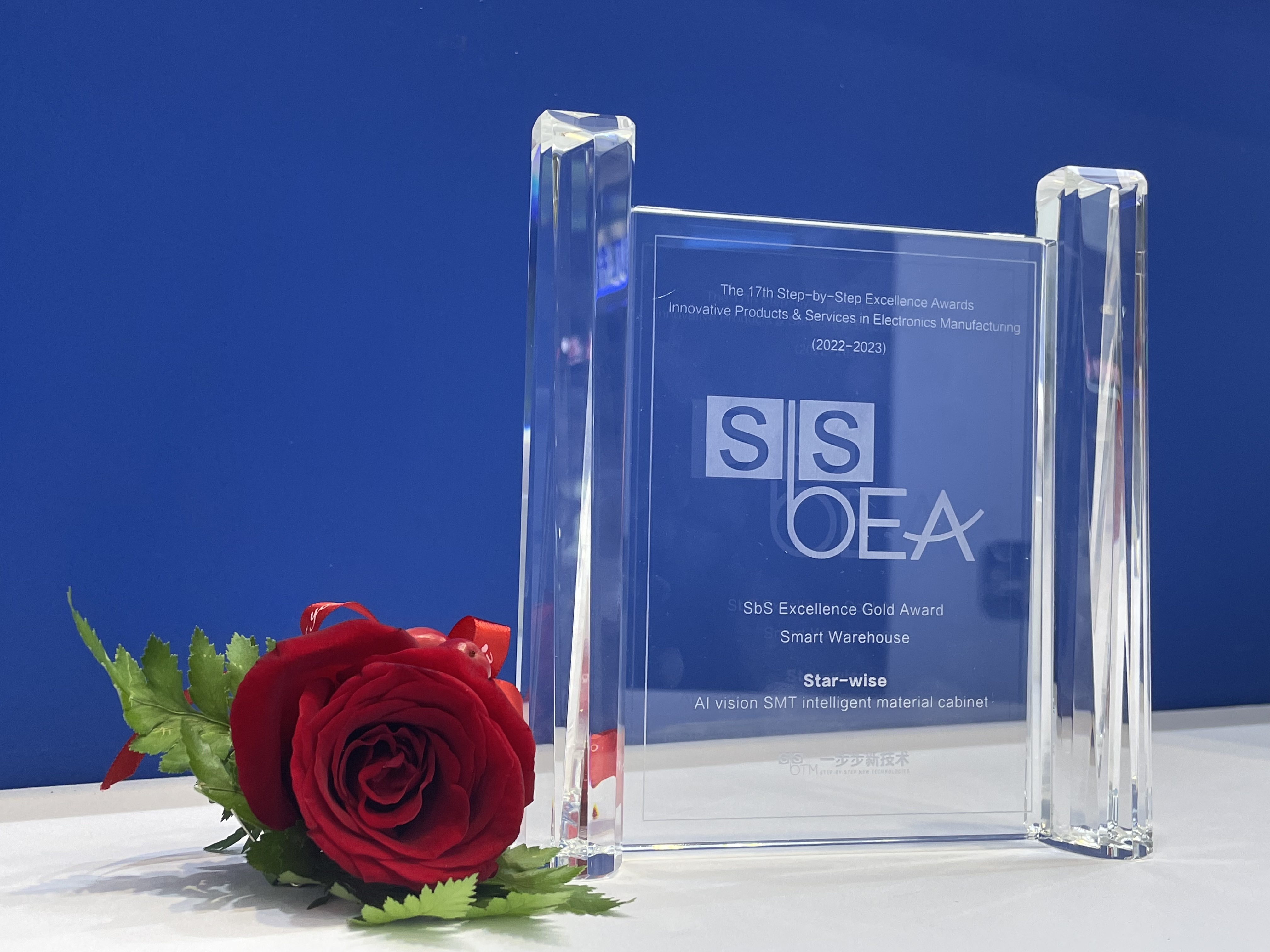 10月11日,展会同期举行了一步步卓越奖颁奖典礼。一步步卓越奖是中国电子制造市场的重要评选活动,由行业内技术专家、中国电子制造行业高级技术管理人员组成独立的专家评委会。星网元智“SMT智能料柜”荣获2023卓越奖,这是对星网元智产品的认可与支持。