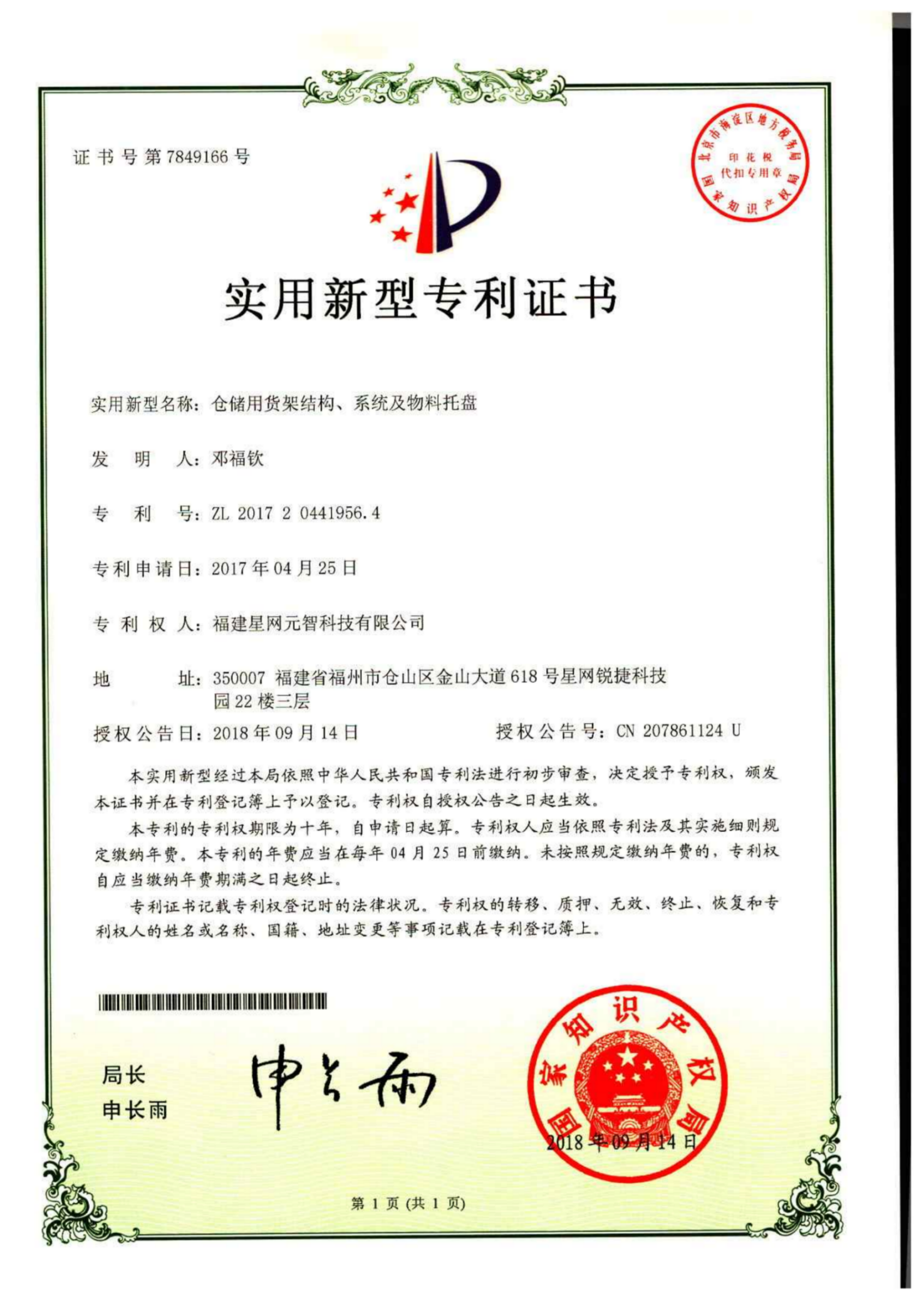 实用新型专利:仓储用货架结构、系统及物料托盘