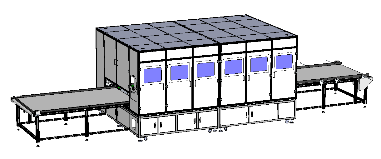 AI视觉电池包钣金箱AOI设备,用于对电池箱、钣金箱出厂前的品质检验,检验面数有5面/6面。检测类型有:
